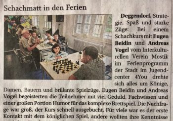 Die Sommerferien sind längst vorbei, aber die „Deggendorfer Zeitung“ schrieb über das Ferien Programm 2025 und stellte ein Bild mit unseren jungen Schachspielern. Beim Ferien Programmem 2025 hat Interkultureller Verein Mostik sieben Workshops vorgestellt, allen Leitern und Leiterinnen ein herzliches Dankeschön! Verzierung von Fenster-Kugeln Entdecke die besten Ideen für Fenster-Kugel und la...