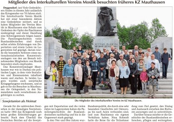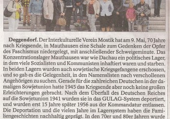 Schon zweimal hatten Moskauer Jugendliche Deggendorf besucht, nun haben zehn Jugendliche und zehn Erwachsene des Interkulturellen Vereins Mostik einen Gegenbesuch gestartet. Der Austausch war intensiv und abwechslungsreich, die engagierte Reiseleitung lag bei der Vereinsvorsitzenden Katharina Bakaev. (mehr …)
