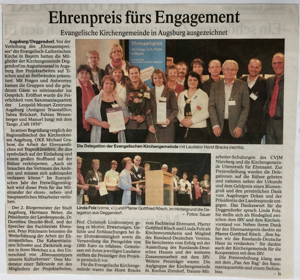 Zwei Monate lang war das Museum überfüllt mit Besuchern, die sich für die Geschichte der Russlanddeutschen interessierten. Am Ende des Projekts wurde die Evangelische Kirche zusammen mit dem Verein nominiert und gewann einen Ehrenamtspreis der Evangelisch-Lutherische Kirche in Bayern!